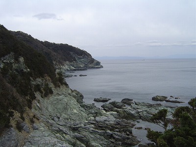 中央より右側が瀬戸内海、左側が豊後水道(太平洋)