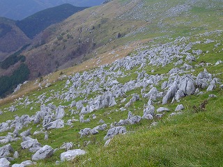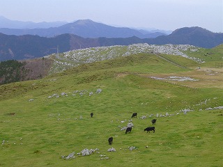 | カーナビに逆らい近道をして、南西側[梼原町(ゆすはら)⇒地芳峠]から 上がったが、曲がりくねった細い道がだらだらと続き、さらには崖崩れ しているところもあってとにかく大変でした。 南東側から須崎方面へ下りましたが広い道をスイスイと快適でした。(笑) 「四国カルスト」は日本三大カルストと言われるだけあって、美しい山々に 囲まれたカルスト風景は見ごたえがありました。 |