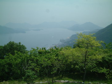 | 三原市 筆影山 山頂展望台から 残念ながら、もやがかかっていて、美景が よく見えません。 |