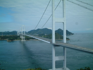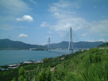 | 多々羅大橋 (広島県と愛媛県の県境) 生口島と大三島間に架かる大橋。 生口島側の瀬戸田PAから見たところ。 |