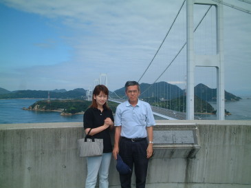 | 糸山公園展望台(今治市)にて 来島海峡第三大橋を見たところ。 長女みどりと私。 |