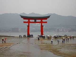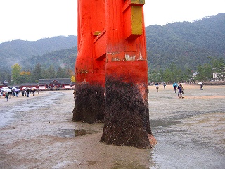 遠浅なので引き潮の時に大鳥居の直下まで行けるので、