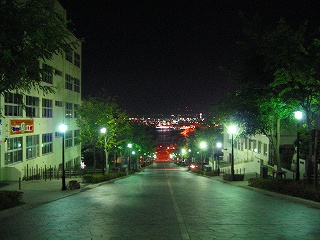 八幡坂(CMで使われる坂)、右側はライトアップ時