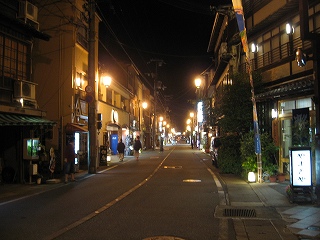 | 中間付近の王橋? (城崎温泉) さすがに月曜日の夜は人通りが少ない感じ。 |