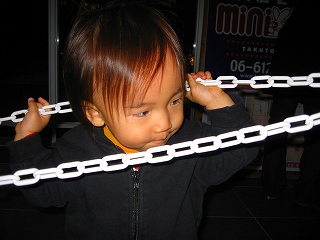 チェーンをくぐったり、引っ張ったり、はさまったり。