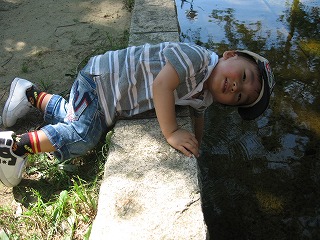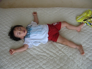 | 大阪へ行き、孫のこうちゃんを連れて鶴見緑地へ。 暑い中、日陰を求めながら歩き回りました。 坂を上がったり下ったり、噴水の水しぶきを受けたり、 鳩が逃げるのを追いかけたりしながら遊びんでいました。 そのあと、定番の今福鶴見のSCへ行きました。 夜は風呂上りに、今流行りの歌「羞恥心」を踊りまくりました。 携帯ワンセグの画面を見ながら踊るわ踊るわ。 「大きくなったなあ」と目を細めるジジとババでありました。 翌朝、寝起きにもかかわらず、前夜の絶好調を引っ張って ひょうきんな顔の連発。 いざお出かけと言うと、遅れをとらないように自分で 服を準備してきて、着せろと言います。 地下鉄でナンバへ出て、千日前から法善寺横丁を通って道頓堀へ。 そして今回お目当ての「くいだおれ・太郎君」とのご対面。 店前、店中は人人人でごった返していて、閉店するのがもったいない 心斎橋筋を通って、大丸百貨店へ。 車のオモチャ売り場からなかなか離れずに往生しました。 そして再び地下鉄へ乗って帰宅。 歩きつかれてこうちゃんは大爆睡でした。 (ジジも) |