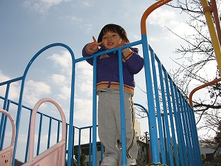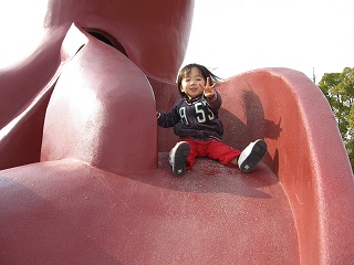| 一番難しかったすべり台に挑戦して、無事成功!ピース。(撮影を要求された。) | ||