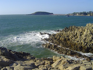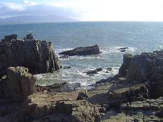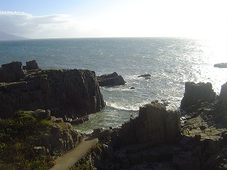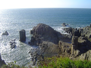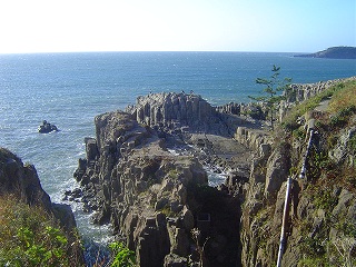 輝石安山岩の柱状節理の巨大な岩柱が約1kmに渡って続く。