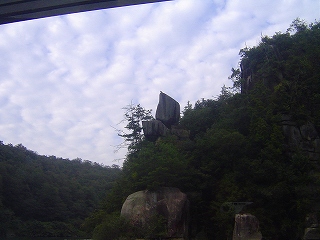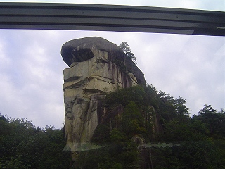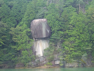 木曽川流域にせり立つ断崖や、数々の奇岩を観光させる高速艇にて