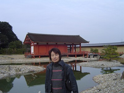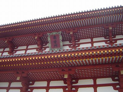 | 東院庭園から朱雀門方向(南西)を見たところ。 | 朱雀門 朱塗りの美しい門。6年前に復元されました。 |