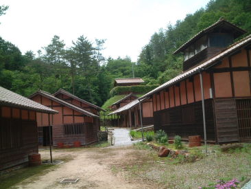 ベンガラ館 一番奥が資料館。その他は当時のベンガラ 製造の施設を復元したもの。 |
