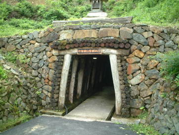| 笹畝坑道 昔の銅山入口。 300円で入坑させて観光スポットにしている。 借りたヘルメットが何度も頭をぶつける くらい天井が低かった。 |