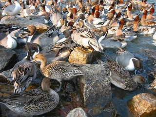 | 交流会メンバーの「蘭の武ちゃん」開催のシンビジュウムフェスティバルを見学。 「愛子さま」「アリア」という花に興味を持ちました。 しかし、最終的には家内の意見に従い、武ちゃんが 今年おすすめだという「ゴールデンイエロー」の鉢植えを2鉢購入しました。 玉野の深山公園に立ち寄りウォーキング。 オナガガモ(と思われる)が、パン餌に群がるところを見ました。 鯉が群がるのを何度も見たことはありますが、カモの群れは初めてでした。 紅葉は1週間前が見頃だったようで、 一番きれいな紅葉谷では落葉が目立っていました。 一番奥では、サザンカの花がきれいに咲いていた。 帰りに道の駅「深山公園」で、名高い海の幸を購入して戻りました。 歩いた距離は約6kmでした。 |