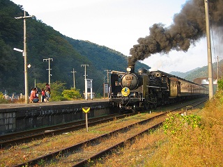 | 今回は津和野には行かないと決めて出発したので、ガイドブックも地図も 持参せずに津和野を訪れました。JR津和野駅の観光案内センターで見所を 教えてもらおうと駅前駐車したのが幸運で、SLやまぐち号が津和野駅を出発 するところを撮影できました。汽笛と黒煙と水蒸気で包まれて動画撮影しまし たが、感動モノでした。 |